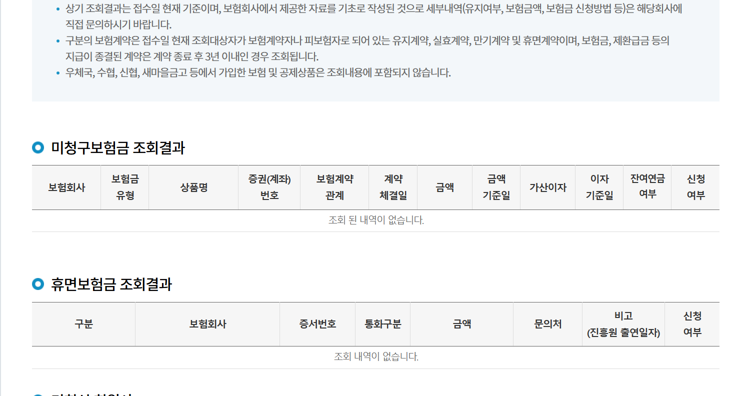 금액이 큰 경우 보험사에서 직접 연락해 추가 확인을 요청할 수 있습니다. - 휴면 보험금은 이자 없음
